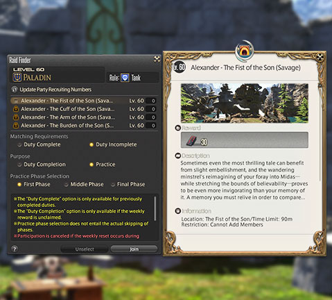 Players can now be matched automatically with other players to challenge the hardest encounters Eorzea has to offer. Including options to match with other experienced players or practice groups, finding comrades-in-arms has never been easier.
