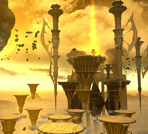 Under the influence of the lesser moon Dalamud, Nael van Darnus, legatus of the VIIth Legion, sought out and unearthed Allagan ruins in the eastern highlands of Coerthas. Aided by the knowledge contained therein, he raised the very earth unto the heavens, and from this lofty perch did the White Raven nearly orchestrate the destruction of Eorzea.
